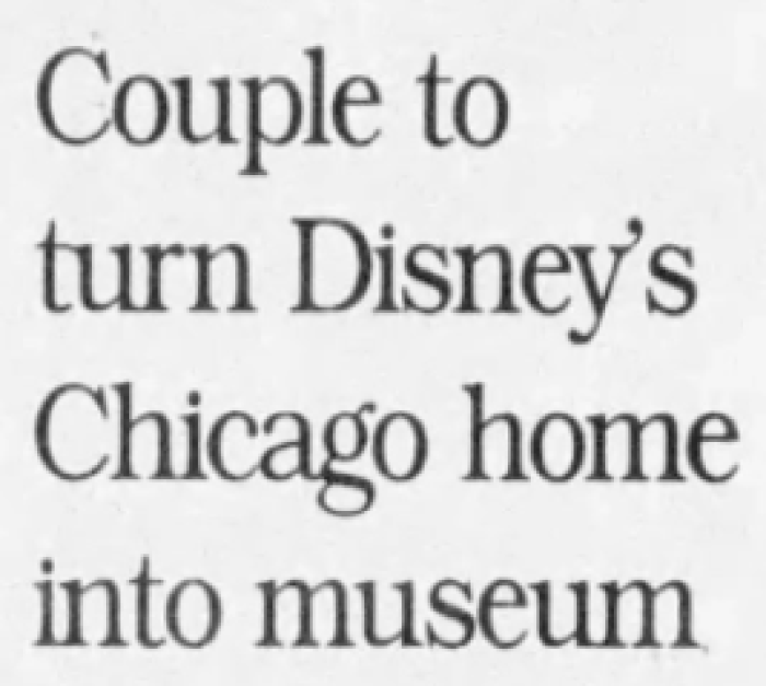 It is at this point in our timeline (see link below) that we lose track of the owners until 1991, when the house gained notoriety for being Walt Disney's birthplace. It was at this time that the Chicago Commission on Landmarks, a group responsible for recommending sites for legal protection as official landmarks, debated whether Walt Disney's childhood home should be designated as an official landmark. The owner at the time, June Saathof, stated that she would rather the house not be designated, because she felt that "it's my house, and it has my personality."