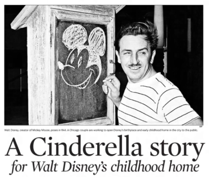 Now, we must first begin with Walt Disney's father, Elias, who arrived in Chicago to help build the 1893 World's Fair. After the fair, Elias decided to settle down and build his own home in the Windy City; Elias Disney was a carpenter after all, and who better to build his house than him?