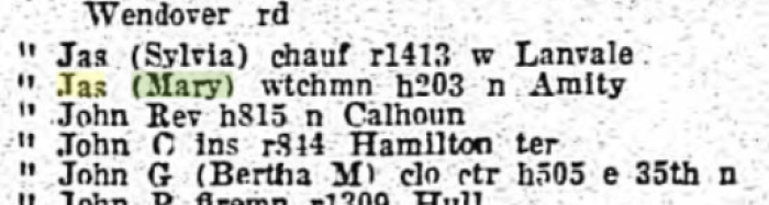 The Knoxes still lived at 203 N Amity St. as of 1930, when the census lists James (who still worked as a watchman) and Mary Knox as the residents. James Knox Jr. had also been listed, and he was unemployed at this time.