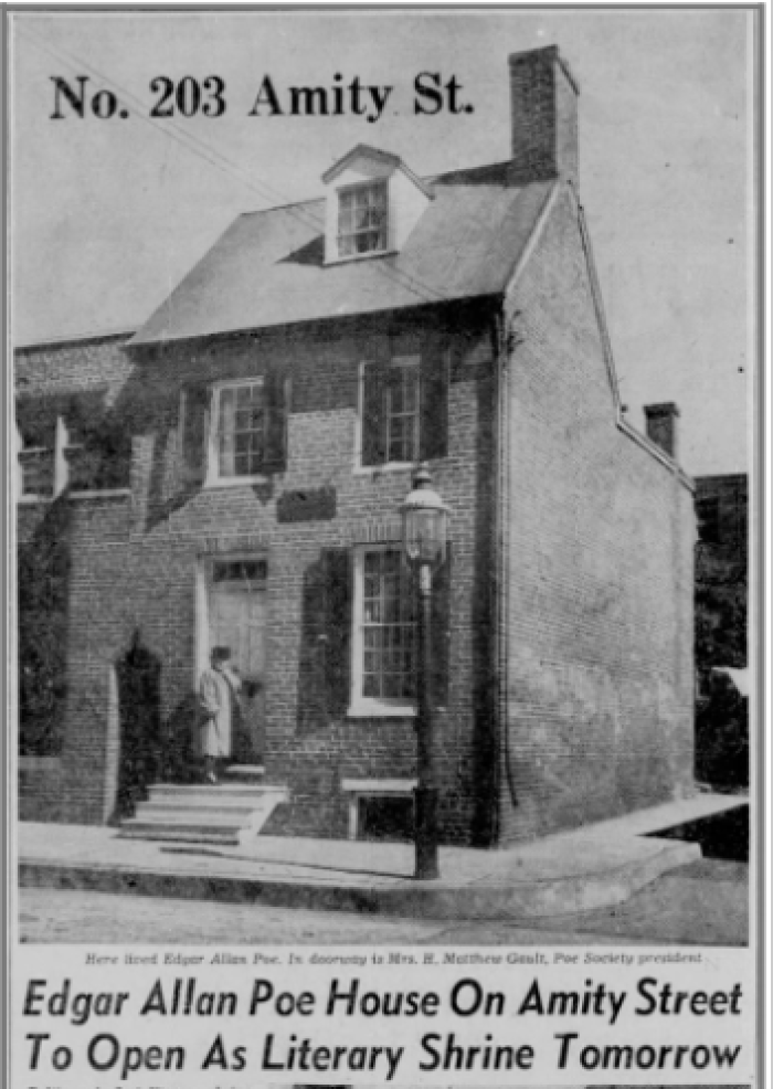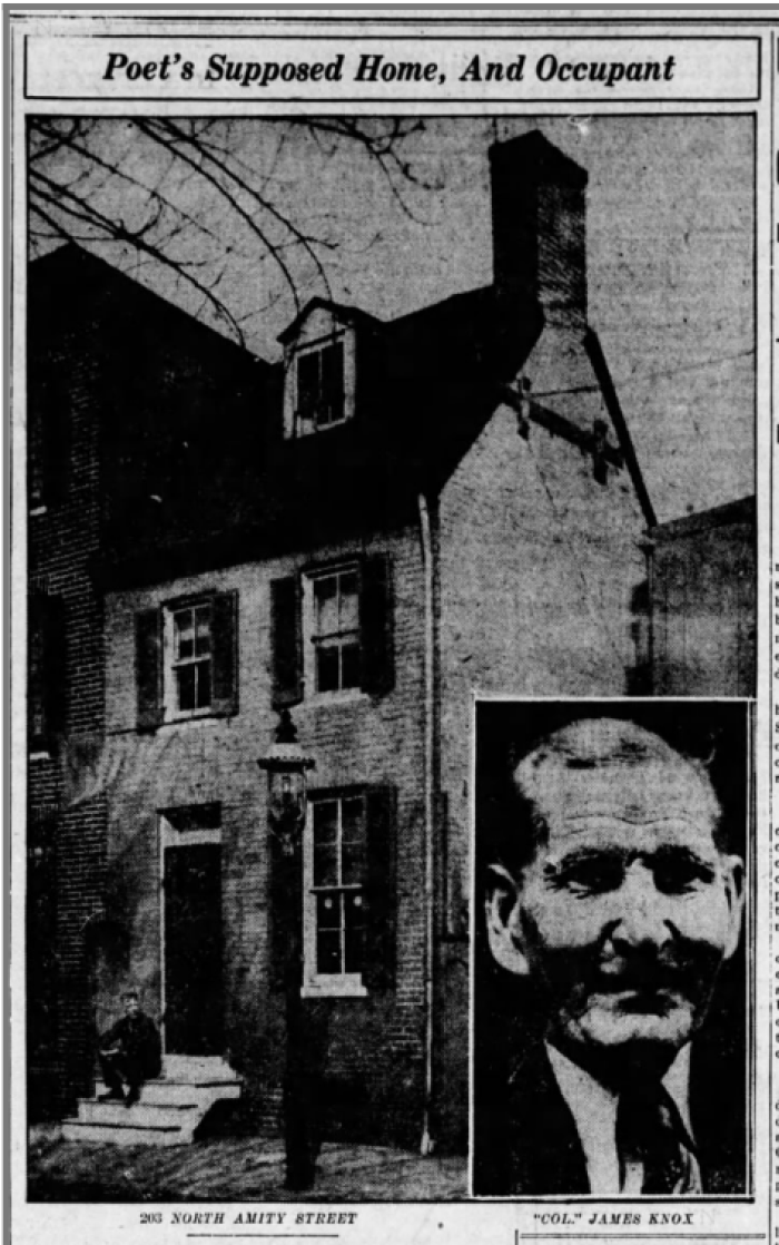 This article also states that the Knox family argues that Poe was born at 203 N Amity St, a claim that is not supported by facts. Poe was born in Boston. However, at the time of the article, it seems that Poe's birthplace had not been authenticated yet, so some scholars did explore that possibility.