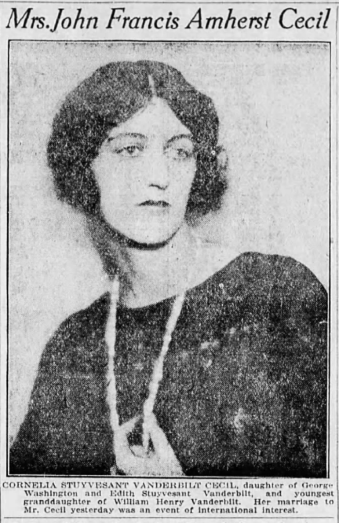 As for the occupants of the house, in 1924, Cornelia Vanderbilt married English aristocrat, the Hon. John Francis Amherst Cecil. After their honeymoon in Europe, they would have inhabited the Biltmore estate.