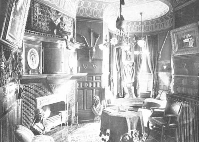 After the division of the estate, Frederick Pillsbury's widow, Alice, and their children lived in the house for the next few years. From this period, we have a photo taken of the interior of the house from around 1893. It depicts a very ornate room, the kind that does come to mind when one thinks of late 19th-century wealth.