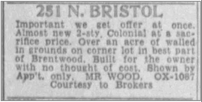 It all began in 1937, when a sprawling Colonial-style home was built in the Brentwood neighborhood of Los Angeles, California. Located at 251 N. Bristol Ave. and measuring a whopping 6,538 sq. ft., the house certainly makes a statement. On the outside, its large columns add stately charm; inside, the home features five bedrooms, five bathrooms, multiple fireplaces, and a finished basement.