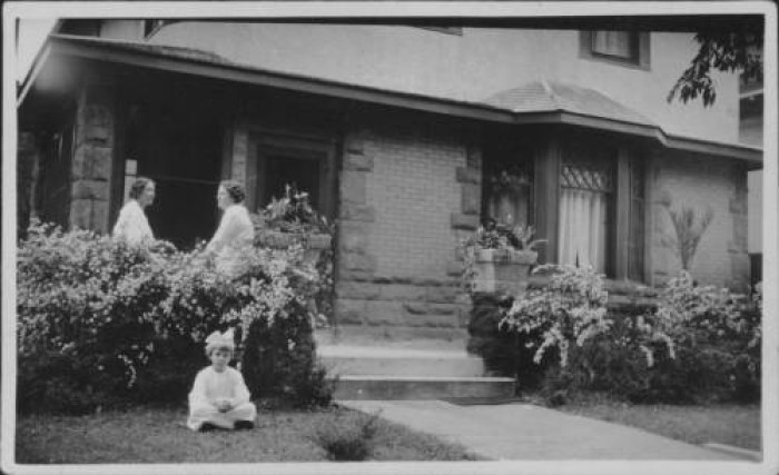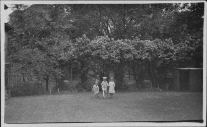 From our timeline (see link below), we also have a few photos from the year 1930. There are five in total, consisting of scenes outside of the house. The first one depicts three children in the center of the photo, lined up on the lawn.