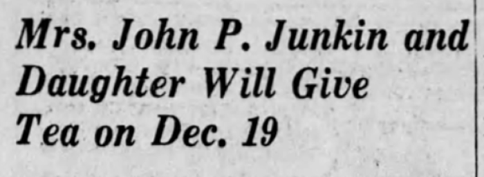 In addition to taking walks, Elizabeth and the Junkins seemed to have been very active in society, as on December 19, 1935, Kathryn and Elizabeth Junkin planned a tea at their house in honor of a Miss Betty Stevenson Miller.