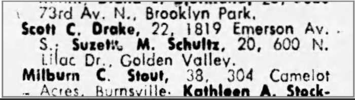 There is not much we know about the status of the house after 1950, but in 1971, a man named Scott Drake listed 1819 Emerson Ave S as his address when he applied for a marriage license. This is the only known instance we have of Scott Drake living at the house.