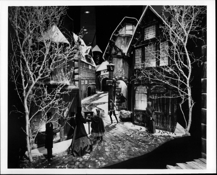 In 1966, visitors were treated to a breathtaking display inspired by the writings of Charles Dickens. Designed by Shimota, the exhibit brought Victorian-era London to life with about twenty hand-built buildings and storefronts, each one depicting scenes drawn from Dickens’ stories, thoroughly researched by Shimota through Dickens' writings and historical research. The reaction was immediate. Minneapolis Star columnist Don Morrison wrote that “this year Dayton’s has outdone itself—and outdone any seasonal display I have seen elsewhere.” Morrison admitted he missed the traditional sidewalk windows, but assured readers that “the new display amply rewards a trip upstairs by young or old.”